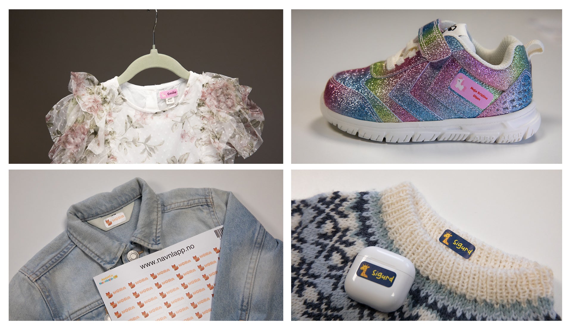 Navnelappene tåler hundrevis av vask og holder seg like fine – både i vaskemaskin, oppvaskmaskin og tørketrommel. De løsner ikke ved normal bruk.